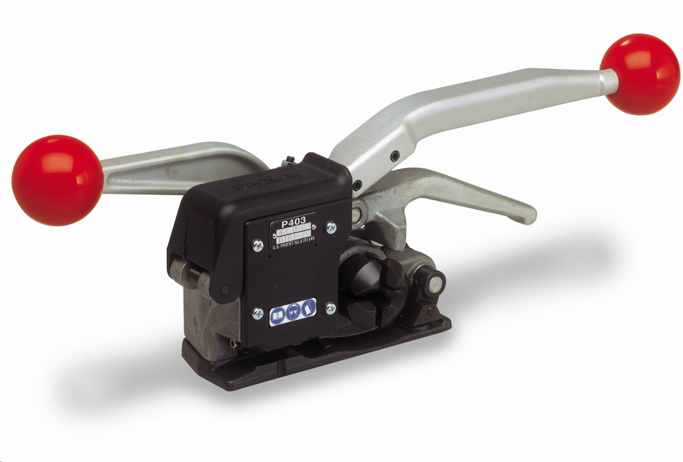 P403Qualité du feuillard :Polypropylène (PP) et Polyester (PET) Dimensions du feuillard :11.0 - 13.0 x 0.40 - 0.90 mm Type de fermeture :Chapes spéciales striées avec une résistance moyenne à la fermeture d'environ 70%, dépend de la qualité du feuillard Poids :3.3 kg (sans suspension)